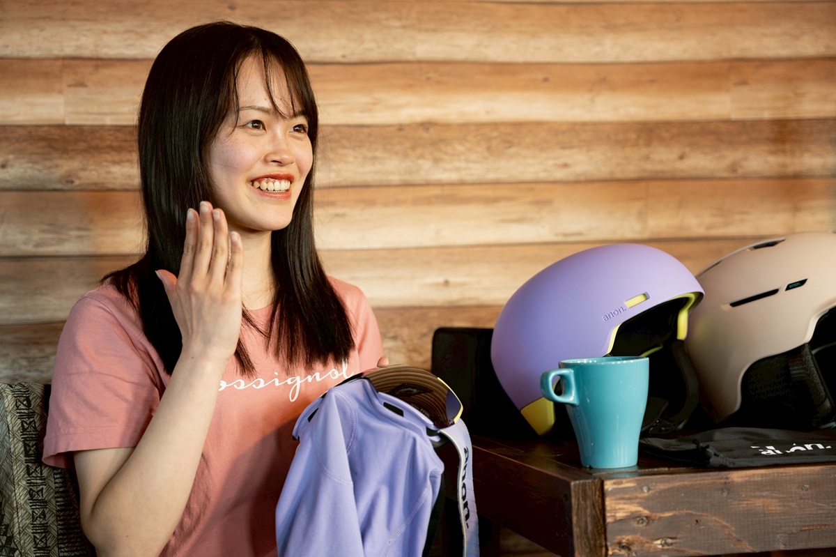 ヘルメット着脱の際のバックル操作がグローブをつけたまま片手で行えることにも大満足。どんな状況下でもラクにヘルメットを着脱できることで、ストレスなく滑りに集中できたと嬉しそうだ。大好きなスキーを快適に楽しめ、より滑りに集中できるように考えられたAnonの細かなギミックは、想像以上だったよう。