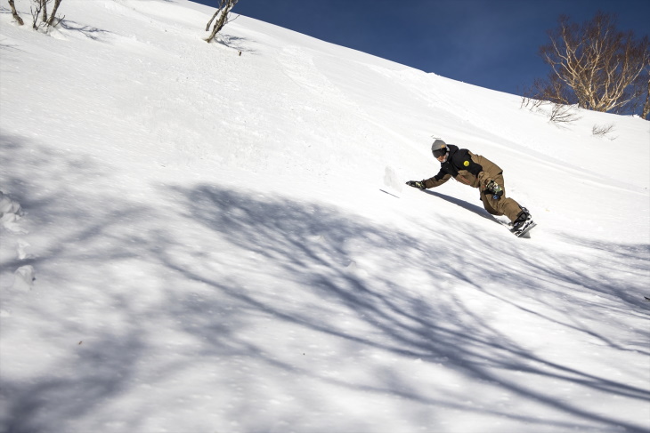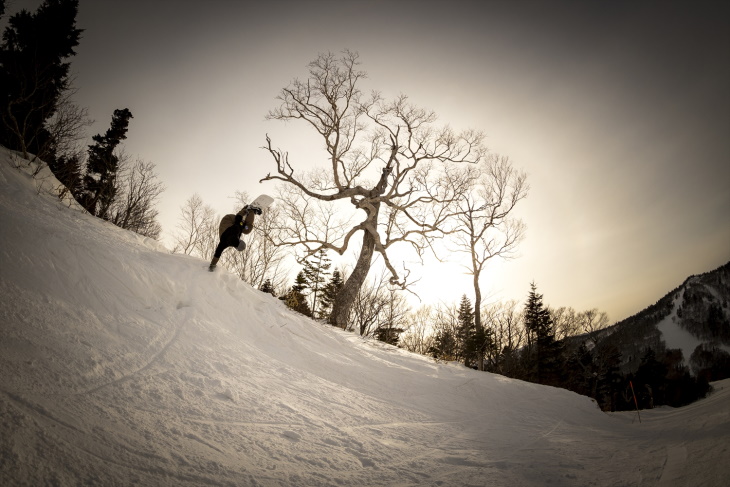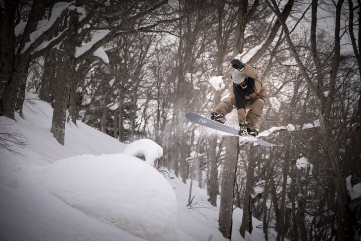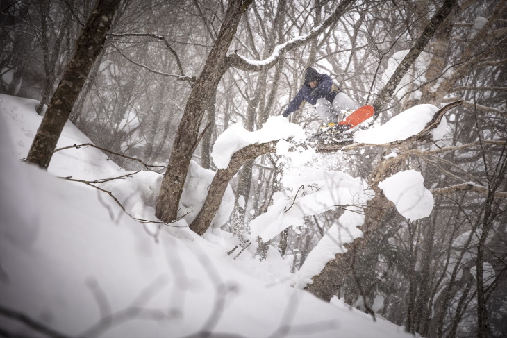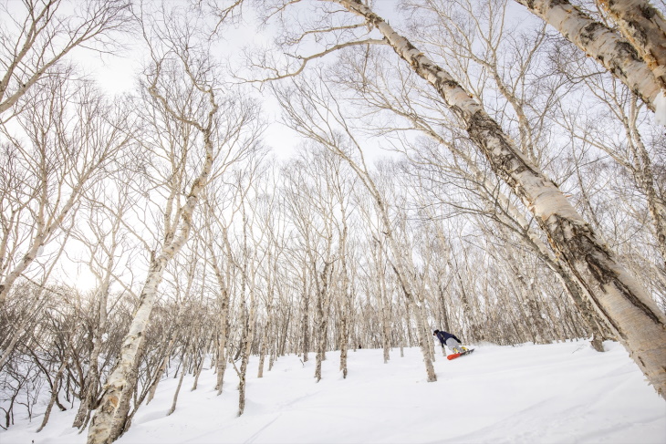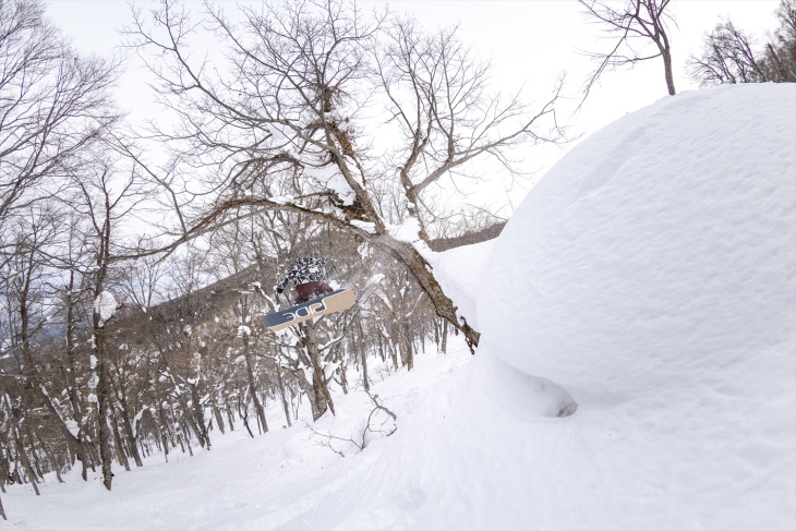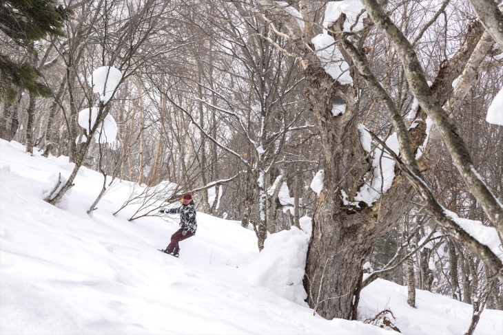 2シーズン前に待望のツリーランエリアを開放して以降、「雪質の良さ」、「地形&木々の間隔」、「マッシュ(などのヒットポイント)」などが映像や口コミにより、安比のツリーランが全国のライダーたちに東北屈指のポイントとして瞬く間に魅力が知れ渡った。そして滑走エリアも徐々に広がり、今季は6エリアを開放。ツリーランが初めてでも安心のエリアや全長1キロと普通のコース並みに長く楽しめるエリアなど、ツリーランのバリエーションが多いのも安比の特徴だ。