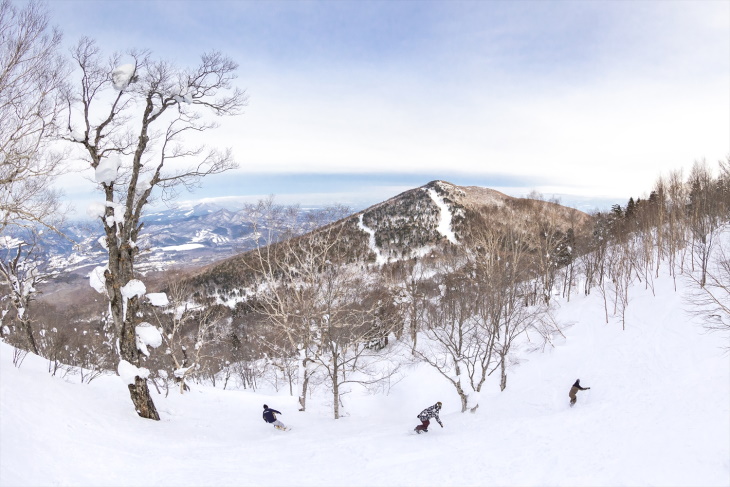 フリーランにおすすめのコースは岩手山の素晴らしい眺望も楽しめるセカンドゲレンデ。ザイラーよりも斜度はないが、適度な斜度が長く続くので気持ち良く滑れる。基本的にコースの半分を整地しないので、コース上でパウダーランを楽しめるチャンスも!