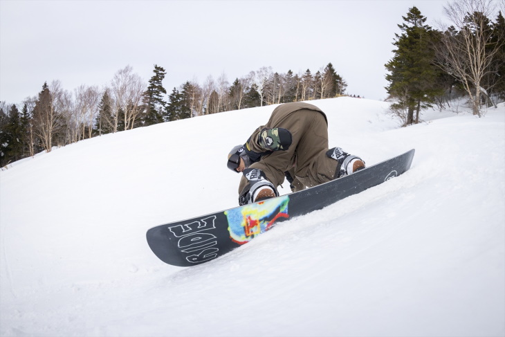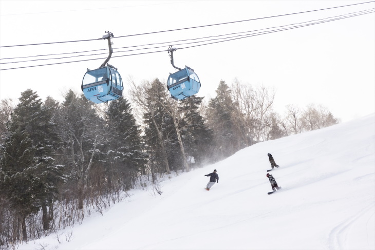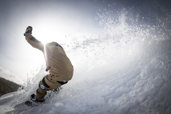 安比はコース整備のクオリティが高いことでも有名。ハヤブサ上部の極上雪質と相まってノーストレスにボードが気持ち良く動いてくれるはずだ。