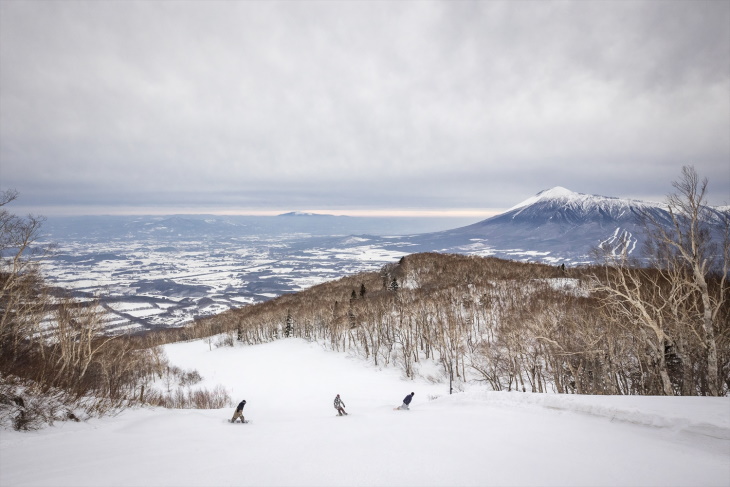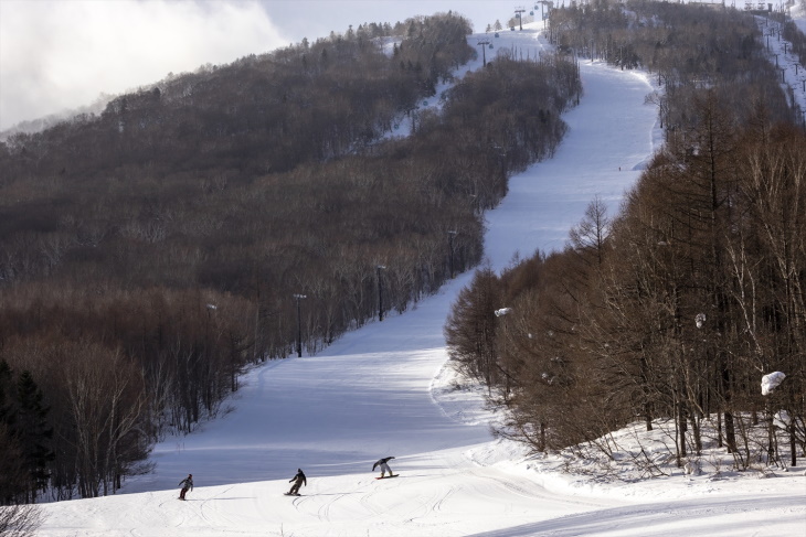 運が悪く、当日の朝まで降雪の無い時期が長かったこともあり、極上のパウダーでは無かったのが残念だったが、それでも林の中は太陽があまり差し込まないから、滑りやすい雪が残っていた。RUIは美しい白樺の間を滑ったことに感動していた。エリアによって、標高によって木の種類が違っていて、自然なままに群生する木々の美しさも楽しみながら滑ってみてほしい。