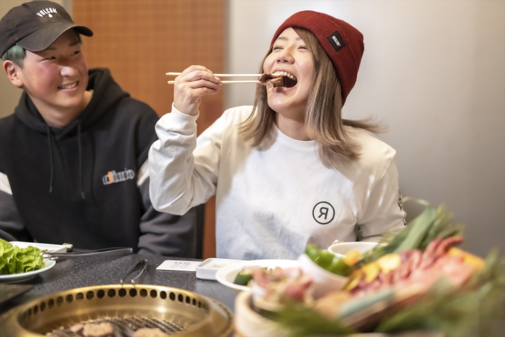 がっつり滑ったら、がっつり焼肉は基本でしょ(笑)。がっつり美味しいモノを食べることが、翌日にもっと楽しく滑れる秘訣!?