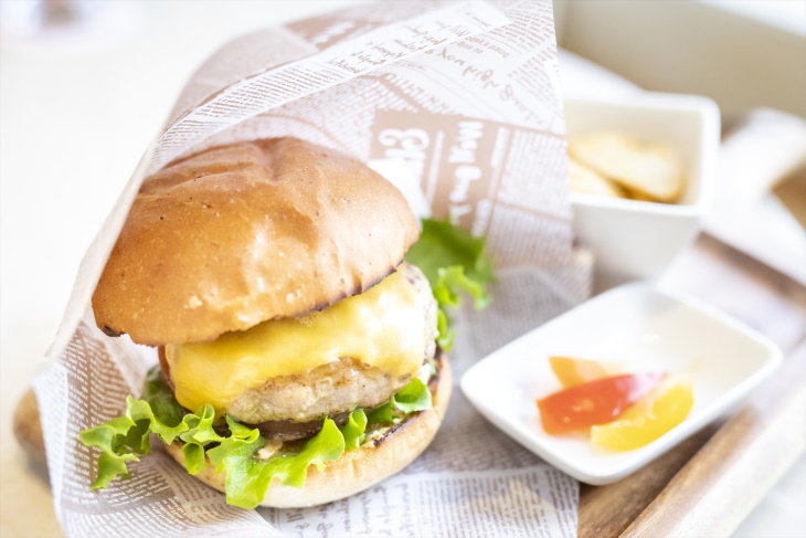 おすすめは安比プライムポークの自家製パテを150g使用し、玉葱たっぷりの特製ソースを使用した「プライムバーガー(ポテト付き)」。一口噛んだ後に流れそうになる肉汁に注意(笑)!