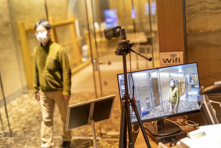 なおホテル内も「コロナ対策」は万全。ホテル入り口には、出入りするお客様の熱を自動的にモニターに表示するシステムを完備。