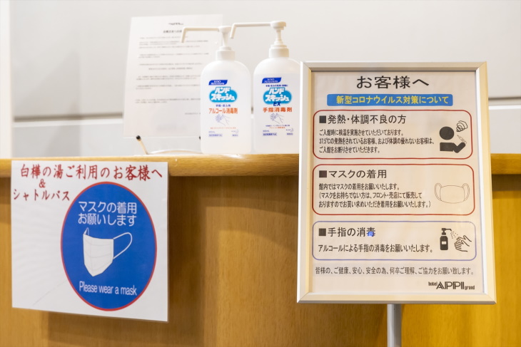 また出入り口やエレベーター乗り場付近などには手指の消毒剤などが設置されているので、積極的に感染防止対策に協力してほしい。