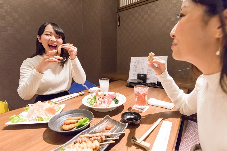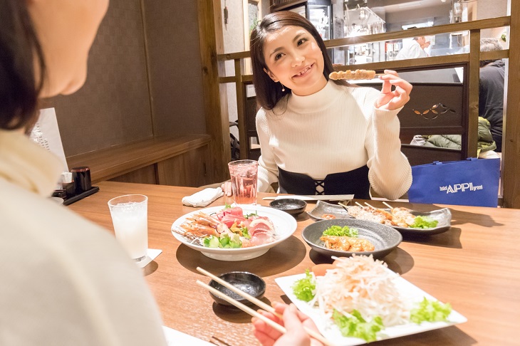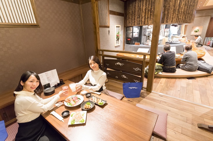 「夕飯がちょっと遅くなってしまったけど、ここの評判を聞いてたから、ここで食べたかった。お風呂上がりにお酒も飲めて、後は寝るだけ〜って幸せ〜!」(カスミ)
