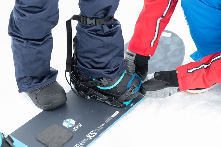 ブーツをビンディングにきちんとセットするのも楽しく滑るための重要なポイント。