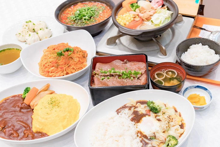 種類豊富なラーメン、ゲレ食定番のカレーやオムハヤシ、ナポリタンやピザなど気軽に食べれるイタリアンに、和牛あぶり焼肉重や冷麺などの郷土名物の料理といった豪華ラインナップが魅力!