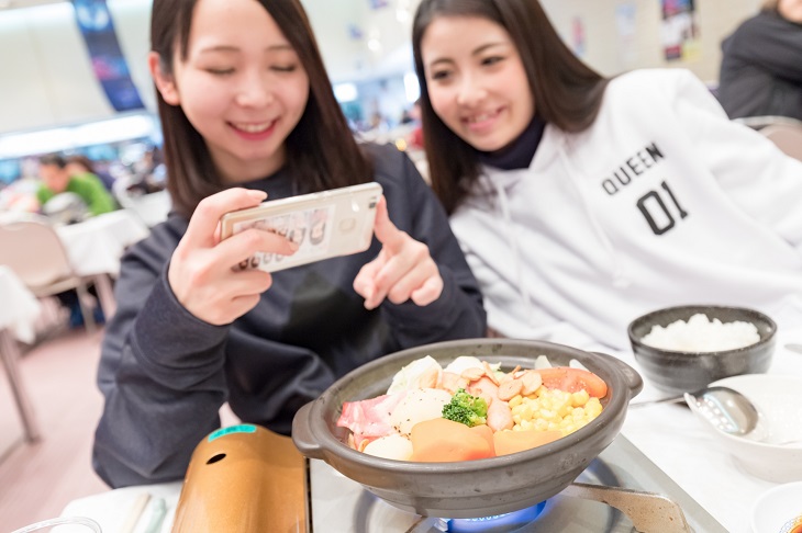ミホは「白銀ミルク鍋」をチョイス。卓上コンロでグツグツやってハフハフ食べて、最後は残った汁にご飯を投入。知る人ぞ知る、安比の人気メニューだ。