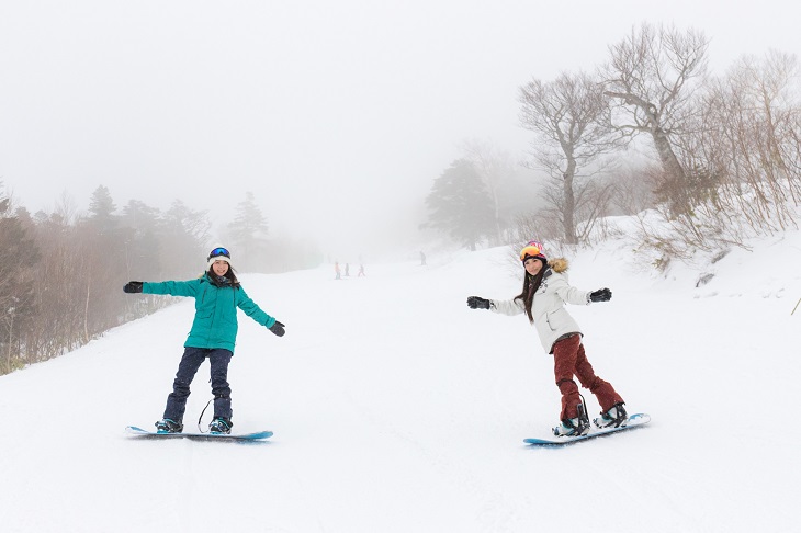岩手県の安比高原は豊かな自然が残り、1年を通して男女・年齢を問わず人気を集める大型リゾート。冬は多彩なコースバリエーションを誇るゲレンデと良質の雪が魅力で、滑る以外にもアクティビティやイベントなども充実。今回は東京でOLをしている、昨シーズン、スノーボードをはじめたばかりのミホは、大学のサークルの先輩で仙台在住のカスミに“一緒にスノボに行きたい!”と相談。ちょうど安比高原まで仙台駅から無料の直通バスが出ている事と、カスミが大好きなアーティストが登場するイベントがあり、しかも女性は無料ということもあって目的地はすんなり安比高原に即決。ワクワクの女子ふたり旅は、仙台駅前からスタートした!