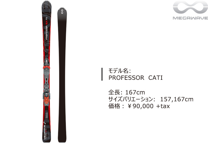 PROFESSOR CATI(プロフェッサー カーボンチタナール)と同じWAVE上にして高い推進力を開放するコア材にカーボンレイヤーで強化された板は、スキーヤーの動きに俊敏に反応する。