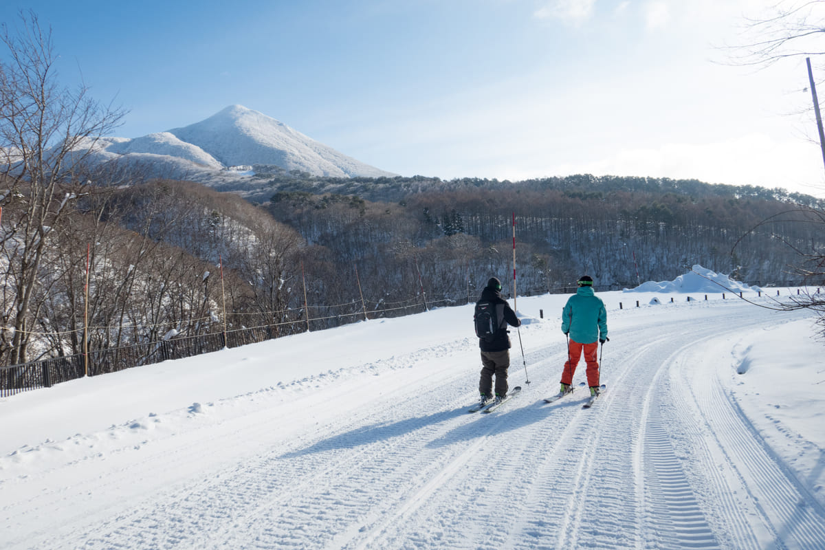 グランデコで初心者におすすめはMain Street。ゴンドラ山頂駅の標高1400m付近がスタートの全長2500mのロングコース。コース前半は磐梯山を正面に臨む幅広の緩斜面で気持ちよく滑れます。上部のコースのみ第2クワッドリフトで繰り返し滑ることも可能です。