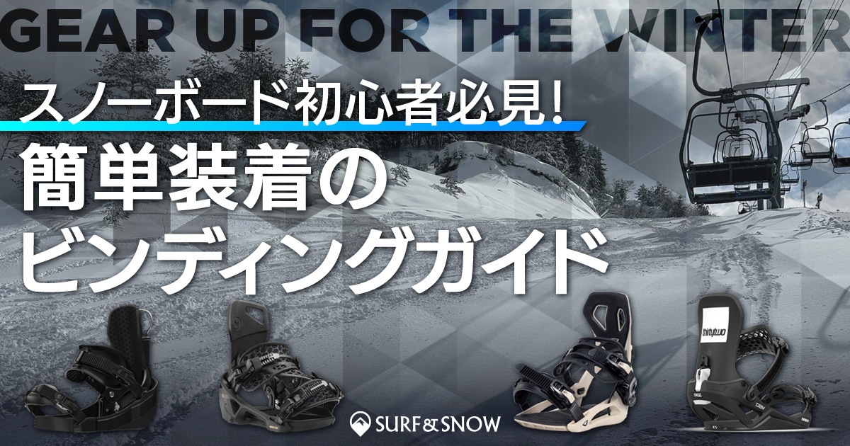 スノーボードのビンディングは、ボードにブーツを装着するためのインターフェイスとしての役割を担う重要なギア。足首周りとつま先部分を固定する2つのラチェット式のストラップを締め付けて足を固定するというのが一般的だが、従来のストラップ式以外にも簡単な着脱を可能にするさまざまなタイプが存在する。ワンタッチで装着できるステップインやステップオンシステム、ハイバックを倒して装着するリアエントリー式、またあらたな構造を持つ新世代ストラップ式など、多くの選択肢が登場している。特に5-26シーズンは新たなイージー脱着システムを搭載するブランドやモデルが増えて、市場が盛り上がっているので注目したい。
