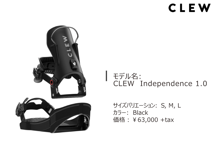CLEWは、ハイバックとアンクルストラップがブーツ側に残る独自のセパレート構造により、2ストラップのフィット感とステップイン並みの着脱性を実現するビンディング。凍結しにくく雪が詰まりにくいフックシステム、スムーズに外せるリリースハンドル、三位一体構造による高いホールド性が特徴で、ブーツの制限もなくパウダーからパークまで幅広く活躍する。