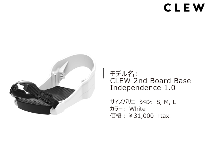複数のスノーボードを使い分けているライダーに最適なのが、CLEWの「2nd Board Base Option」。あらかじめ2台目のボードにベースを装着しておくことで、バインディングをワンタッチで付け替えられ、数秒でスムーズにボードチェンジが可能になる便利なオプションだ。セッション中の地形や雪質に合わせて素早く乗り換えられるため、より幅広いスタイルを楽しめる。