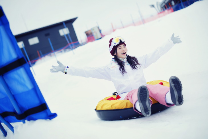 ソリよりももう少しエキサイティングな体験がしたければ、専用コースを浮き輪のようなチューブに乗って滑り降りるチュービングがオススメ。
