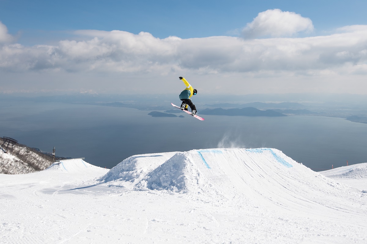 山頂エリアにあるびわ湖バレイ自慢のパークは、規模もクオリティも関西随一。琵琶湖に向かって飛び出す、”映え”必須のジャンプやヒップはまさに新感覚!「CLOUD-Cスノーパーク」には4mのキッカーや、様々なジブアイテムがあり、中上級者のステップアップをプッシュしてくれる。また、エントリー層向けの「ROOKIES PARK」が傾斜の緩やかなゲレンデ下部にあるので、これからパークに入りたいという人には是非コチラで!