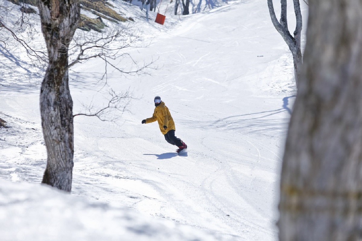 中上級者向けのコースは山頂ゲレンデから西側の斜面に広がり、パウダーや地形、ツリーランも楽しめる。オススメは、大自然を感じながら静かに滑りを楽しめる林間コース。木々の間をすり抜けながら、森との一体感を感じよう。