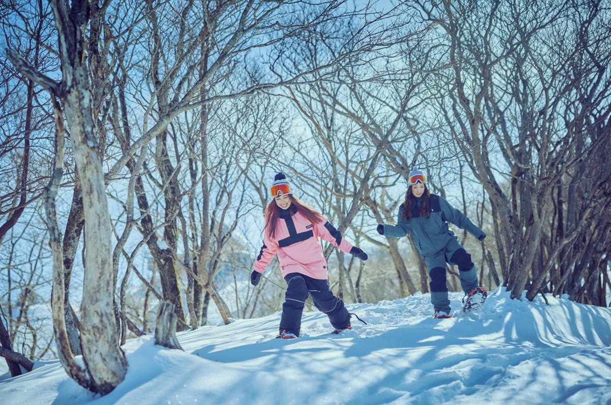 静かな冬の山をのんびりと堪能するのなら、スノーシュー体験がオススメ。スノーシューを履いて山の中を探検してみよう。もちろん初めての人も、ガイドさんが丁寧にレクチャーしてくれるから安心。スキーは苦手という人も、90分の体験で雪山の魅力を存分に味わうことができる。