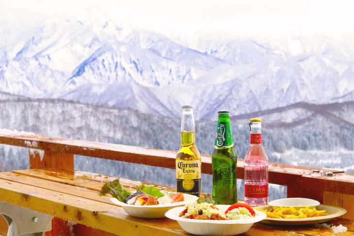 舞子スノーリゾートはレストランが豊富で料理のクオリティが高いことも魅力。ゴンドラ山頂駅を降りてすぐ下のレストラン「café at the top ITADAKI」は展望の良いテラスで食事が楽しめ、写真映えするピンクのゴンドラも設置された人気スポット。また、「BACK COUNTRY MAIKO(バックカントリーマイコ)」では雪上BBQ(予約制)が楽しめたり、日帰りスキーセンター内の「PIXY PLAZA」でテレビで有名なカレー・スパイス料理研究家の一条もんこ氏の「あしたのカレー」が食べられるなど、多種多様なランチメニューがそろっている。