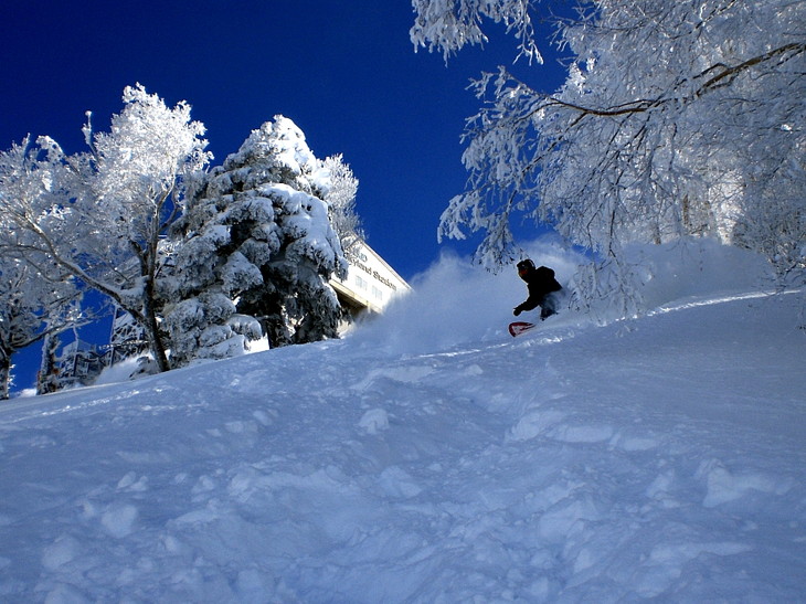 都心から行きやすいのに、ゲレンデベースの標高が1250mもあるため雪質はサラサラのパウダースノー。コース上部にはパウダーエリアのほか、フリーライドパークも設置されており、上級者やパーク好きまで幅広い層が楽しめる。