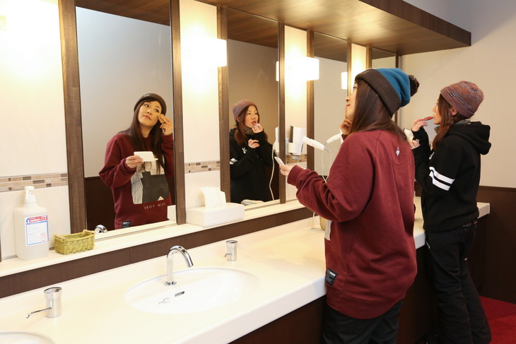 中腹のレストラン「ウッドランドカフェ」は350席を用意するスキー場のメインダイニング。メニューには群馬県産のポークをつかったカツカレーなど地元食材を取り入れている。山麓のレストラン「オン&オフ」はファミリー向けのキッズメニューが充実。また、リゾートセンター内には拡大鏡やドライヤーを設置した女性用のパウダールームを完備。滑り出し前の化粧や休憩時の化粧直しに重宝する。施設の細部まで快適さが行き届いている点も、たんばらスキーパークの魅力だろう。