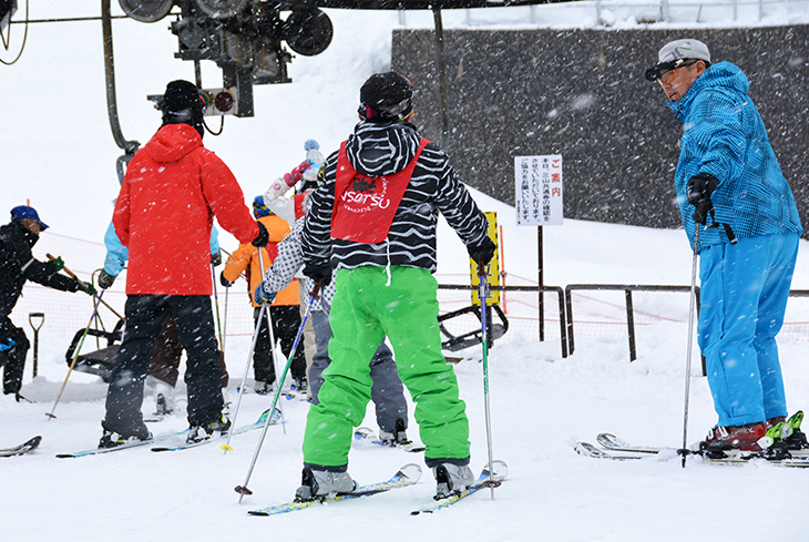 スキーに慣れた滑れる子どもは、インストラクターが一人一人の滑走スキルを確認してからリフトに乗車。