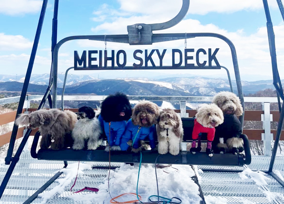 岐阜県郡上市にある「めいほうスキー場」は、西日本最大級の規模を誇る人気のスノーリゾートです。今シーズンより、初心者コースの一部が平日限定のペット同伴エリアとして開放され、リードを着用すればペットと一緒に滑走が可能になりました。愛犬と一緒に雪のゲレンデを滑る、ここでしか味わえない特別なスノー体験を楽しめます。また、標高1,200mに位置するデッキテラス「SKYDECK」では、御岳山をバックにペットと一緒に記念撮影も可能。雪山の絶景とともに、大切なペットとの思い出の一枚を残すことができます。