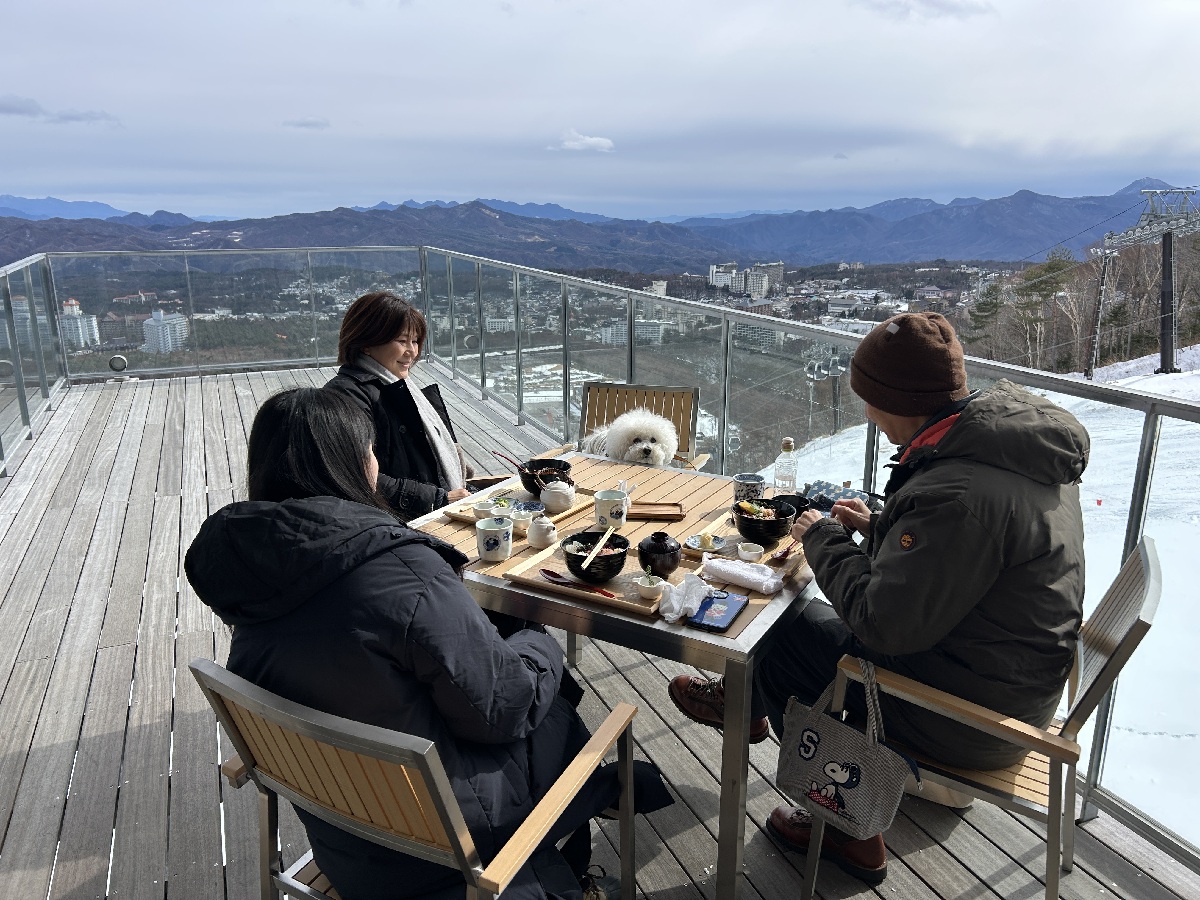 また、最新型の「パルスゴンドラ天狗」はわんちゃんも同乗可能。天狗山山頂まで愛犬と一緒にアクセスでき、山頂から見下ろす景色はまさに絶景です。山頂エリアには開放的なテラス付レストランもあり、愛犬と一緒に、新鮮なお寿司を味わうことができるため、心に残る特別なひとときを過ごせるでしょう。