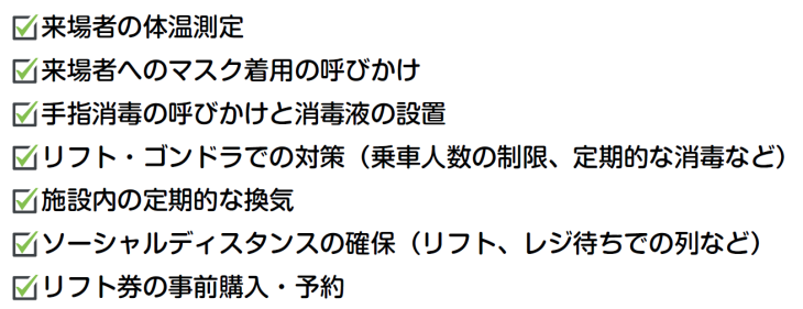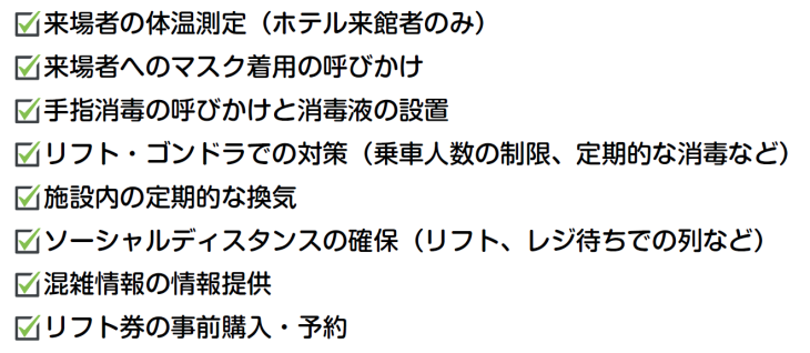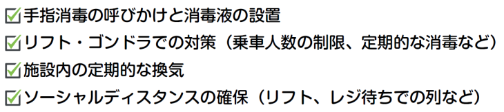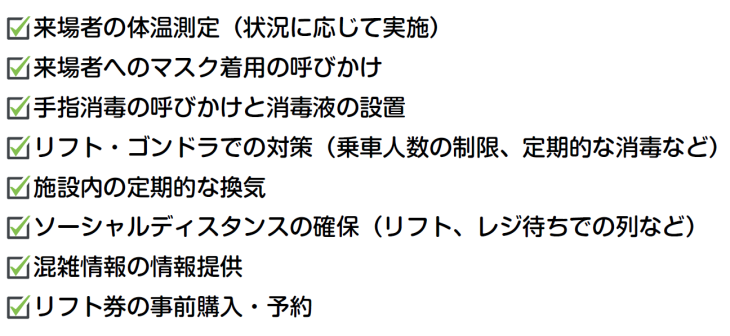 ・全国のスキー場で実施している感染対策ページは以下のページをご確認ください。