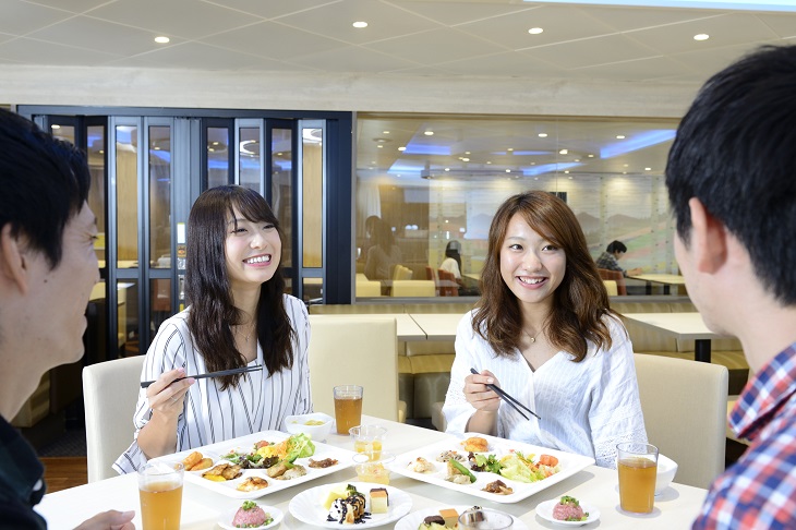 夕方便はレストランも完備しているの夕食も朝食も船内で食べることができる。ただし大洗発の夕食営業時間は20時がラストオーダーで20時30分にクローズとなるので注意(苫小牧発は30分早い)。ちなみに朝食は7時30分から9時30分まで(ラストオーダーは9時)。夕食は4つのメニューから選択でどれでも1,500円。朝食はバランスの良いバイキング形式で1,050円。夕食と朝食の両方を食べる予定なら「2食セット券」が2,300円とお得になるのでおすすめだ。