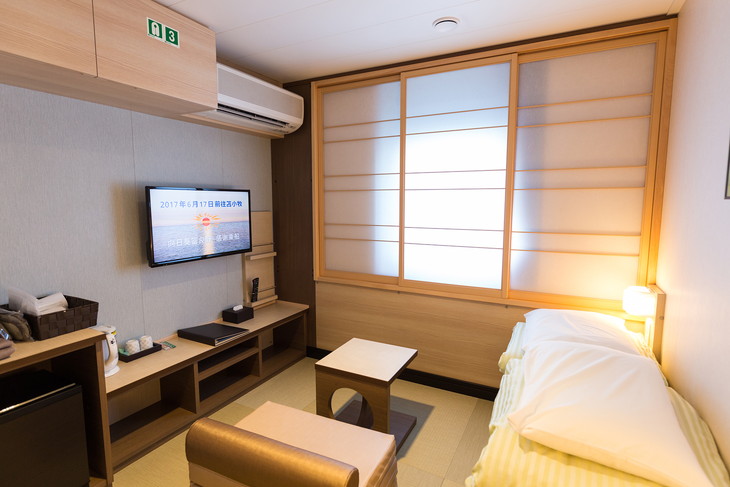 深夜便は出発時間に余裕があり、夕方便に比べてシンプルな施設設備だが、日中の多くを海上移動するので、素晴らしい眺望を楽しみながら、ゆっくりと静かな航海を楽しむことができる。