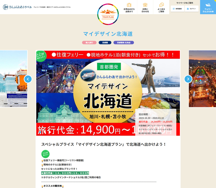 さんふらわあトラベルの提供する『マイデザイン北海道』がお得!