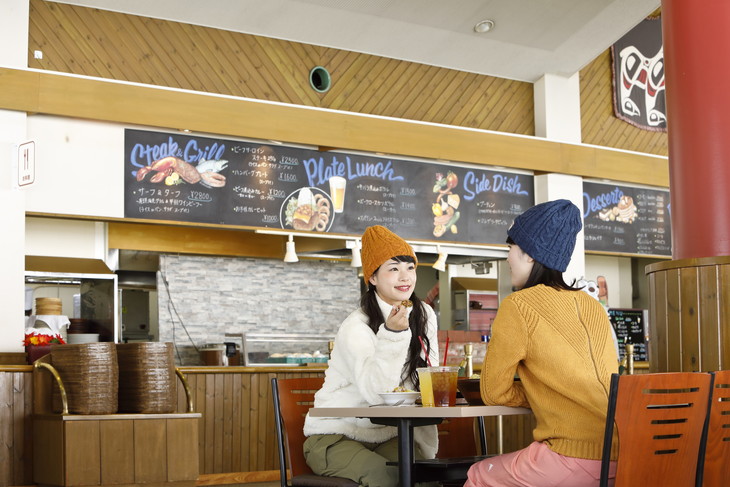 夏は避暑地、冬はウィンタースポーツが楽しめる高原リゾートとあって、レストランの雰囲気がよく、提供する料理もワンランク上の味わい。イタリアンカフェとしてリニューアルした「清里カフェ」は、赤岳を正面に眺めながら食事ができるレストラン。パスタやピザのほか、富士桜ポークのローストや牛ほほ肉の赤ワイン煮込みなど、ゲレ食とは一線を画すゴージャスな料理が味わえる。レストラン「サンダンス」の人気は、自家製のタルタルソースで味わうタラのフライプレートや、ボリューム感のあるステーキ&ガーリックライス。ほかにも、焼き立てパンが味わえるベーカリーがあるなど、食事のクオリティーの高さは折り紙付きだ。