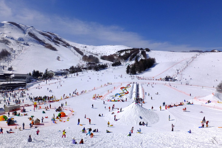 長野県にある車山高原SKYPARKスキー場も晴天率80%を誇り、“車山ブルー”と呼ばれる爽やかな青空が開放的なスキー場だ。