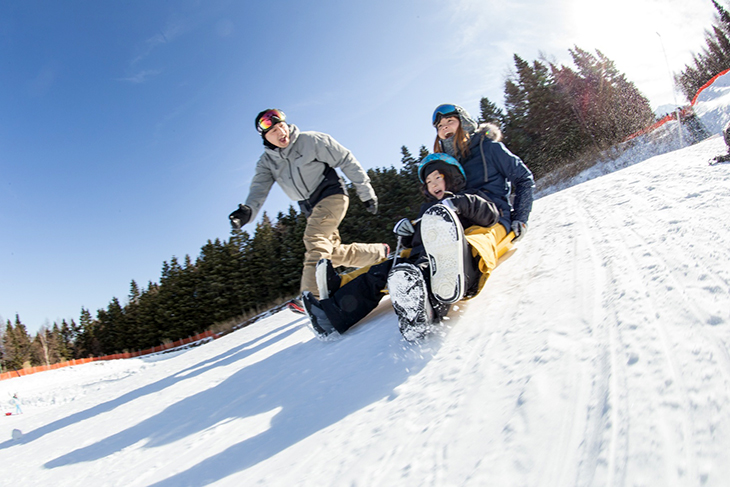 子供たちが大喜びのそり遊び。大人も一緒に夢中になって遊んであげれば、もっと楽しくなる。