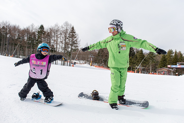 ふじてんには、SAJ公認のスクールがあり、子供向けのレッスンも開催している。スノーボードやスキーは小学生以上を対象としたジュニアレッスンがあり、小学生未満のスノーボードレッスンについては予約制のプライベートレッスンで受付。スキーは4歳から6歳を対象としたキンダーレッスンがあり、プライベートレッスンもOK。(キンダー&ジュニアレッスンは土日祝日のみ)