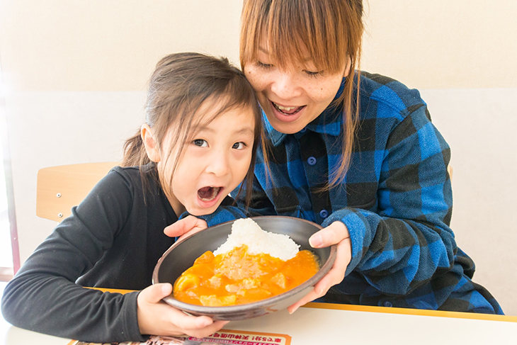 センターハウス2階にあるレストラン「ヨーデル」は600席と広く、富士山を眺めながら食事が楽しめる。人気メニューは「富士山カレー」。ごはんが富士山のカタチになっていて、子供たちもつい食べたくなる。