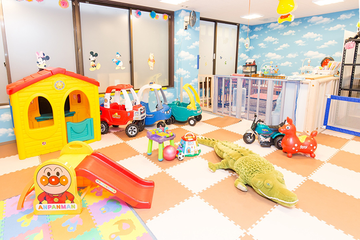 0歳から小学生までの子供を預かってくれる託児所「ふじてんキッズルーム」は半日(午前・午後のどちらか3時間)や1日(6時間)だけでなく1時間単位でも預けることができる。定員は15名で、予約も可能だ。