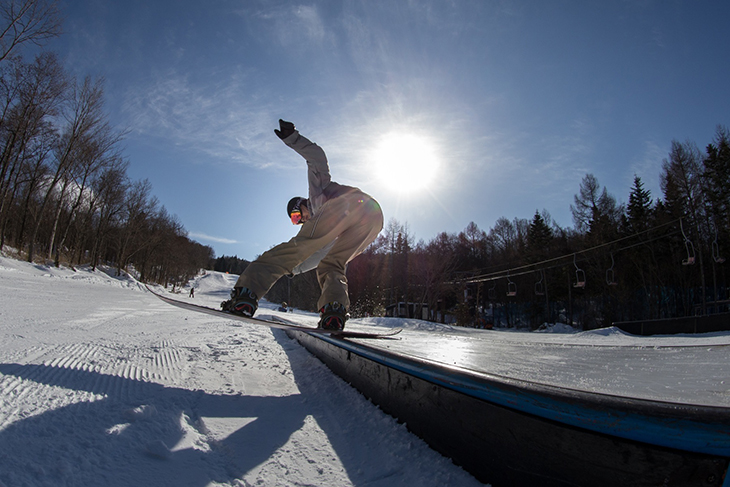 スノーパークはキッカー、レール、ボックスなどのアイテムが、時期にもよるがコース上に10アイテム以上設置されている。スキーはツインチップのフリースキーモデルであれば滑走可能。