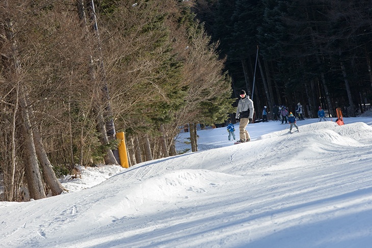 コースのほとんどが初中級者向きということもファミリーにおすすめのポイントだが、ファミリーコースは他のコースと独立した場所にあるので初級者や子供も安心して滑ることができる。