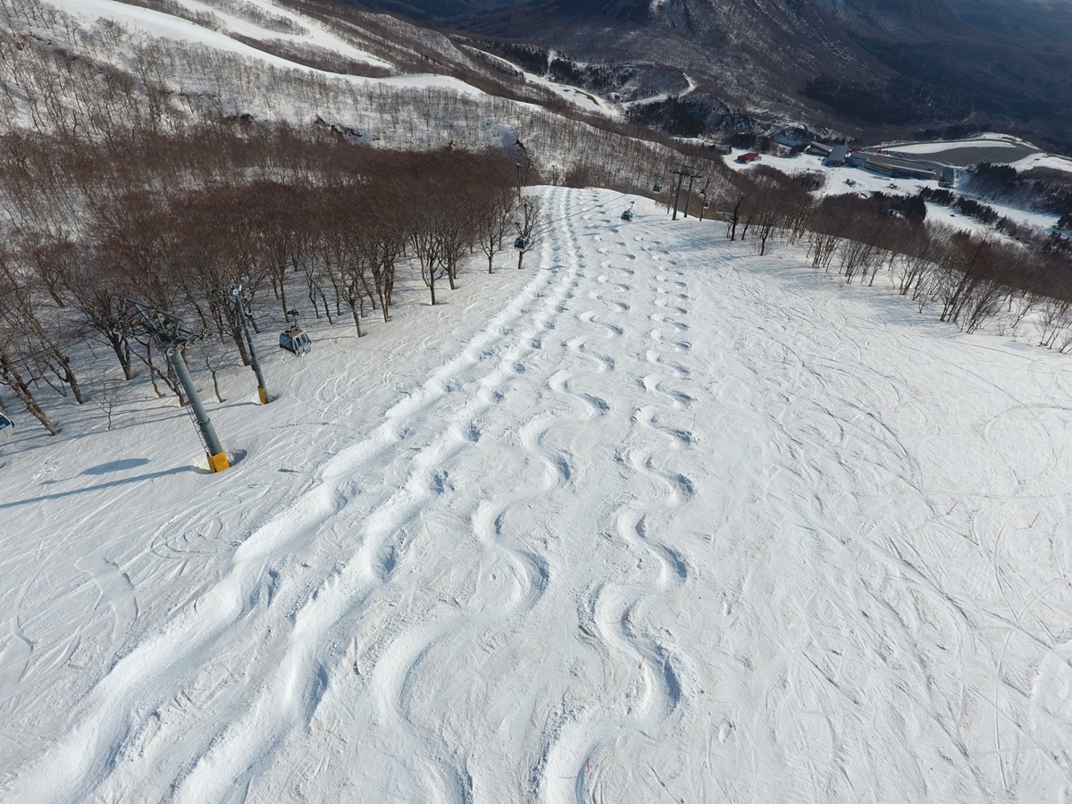 3月上旬〜4月下旬の夏油高原は“コブの聖地”としても知られており、春になると多数のコブラインが造成されます。各エリアとも、スクールスタッフがピッチをコントロールした滑りごたえ抜群のコブが続々と登場するため、コブ練習に最適です。