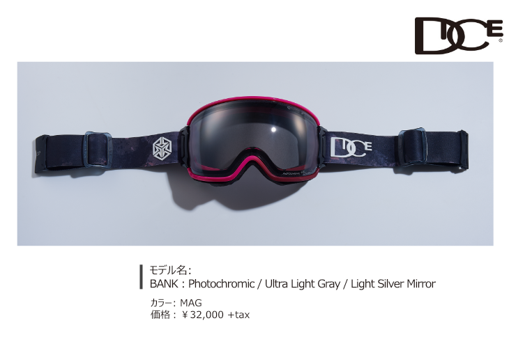 DICE の代名詞となったゴーグル内換気システム「A-BLOW SYSTEM」を採用した平面レンズモデル。サイドパーツを起こすとレンズがポップアップし、レンズとフレームの間に換気スペースが生まれることで曇りを解消し、つねにレンズ内の環境をベストに保つことができる。圧倒的な視野の広さと日本人に最適な抜群のフィット感で、今までに経験したことのない新しいゴーグル体験を提供してくれる。