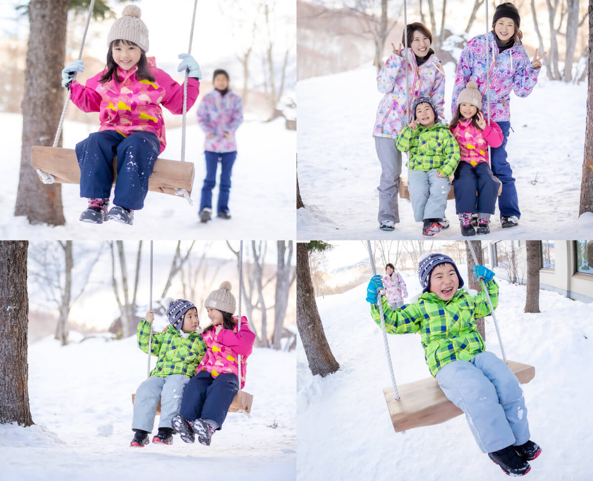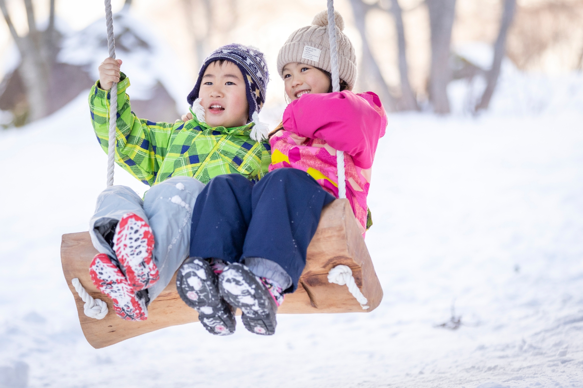 ウェルカムテラスにある「スノースウィング(ブランコ)」も子供たちに大人気。映えポイントでもあるので、子供たちの笑顔とともに写真に残しておこう!