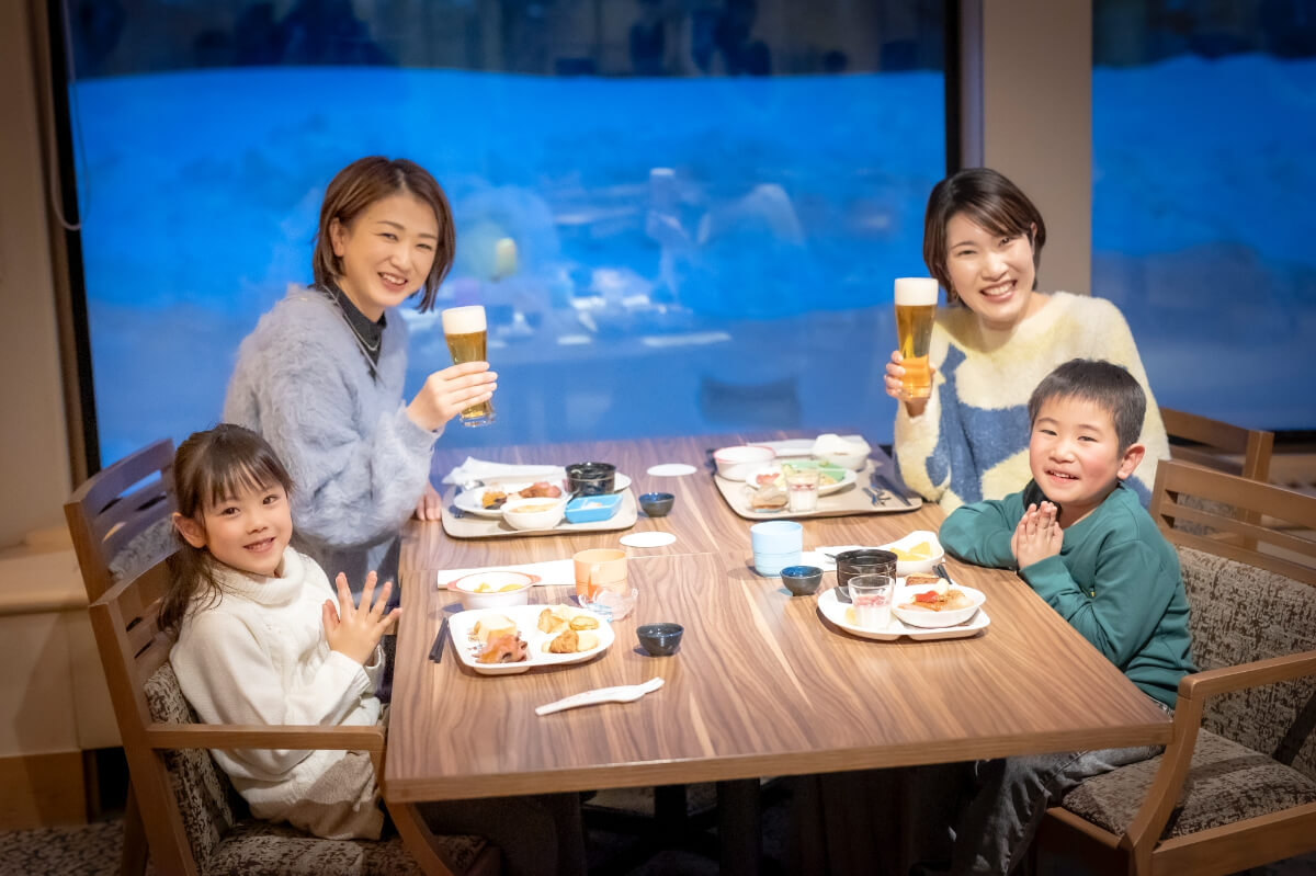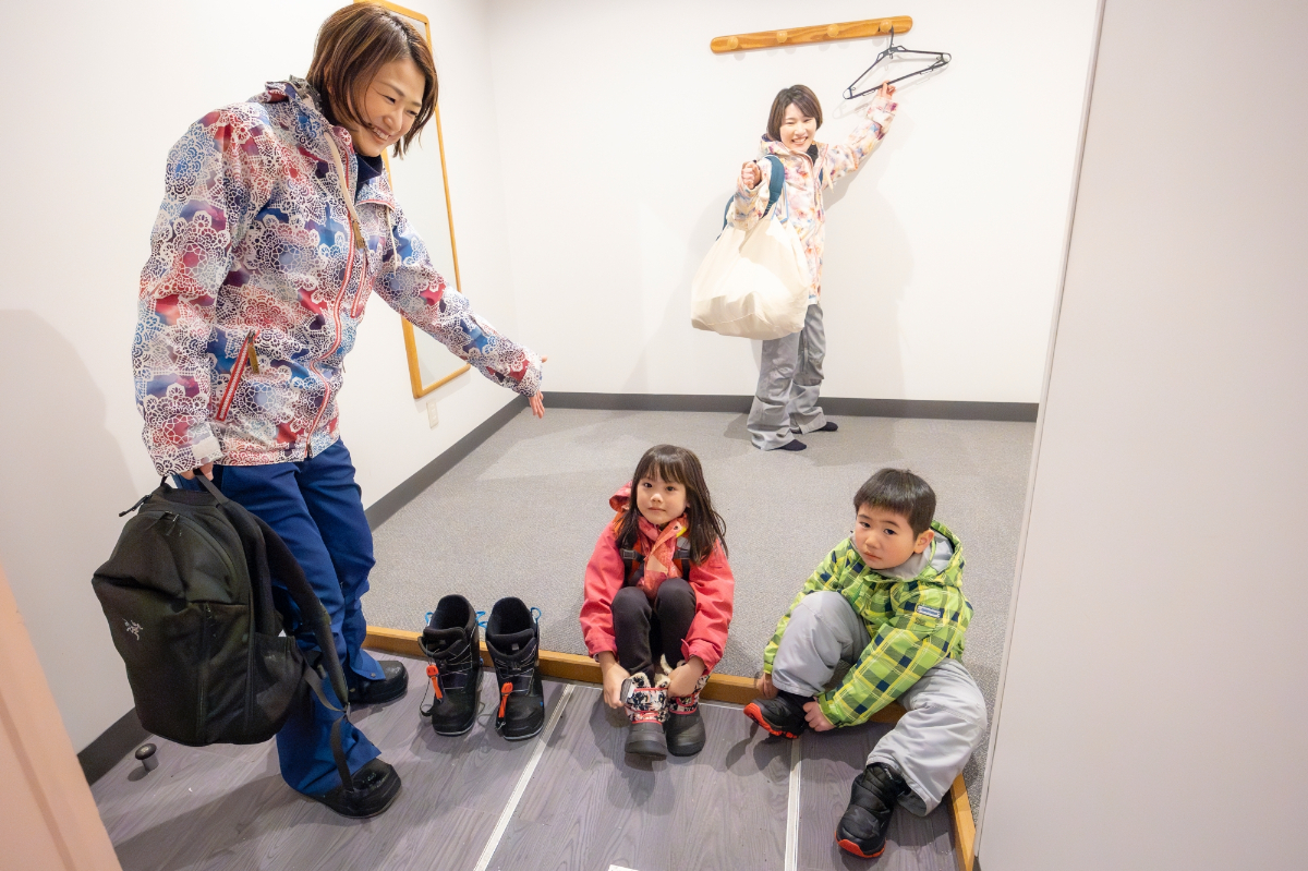 ゲレンデイン・アウトができる立地の良いホテルもファミリーに高ポイント。滑った後の大切な時間も家族みんなで有意義に、楽しく過ごすことができる。