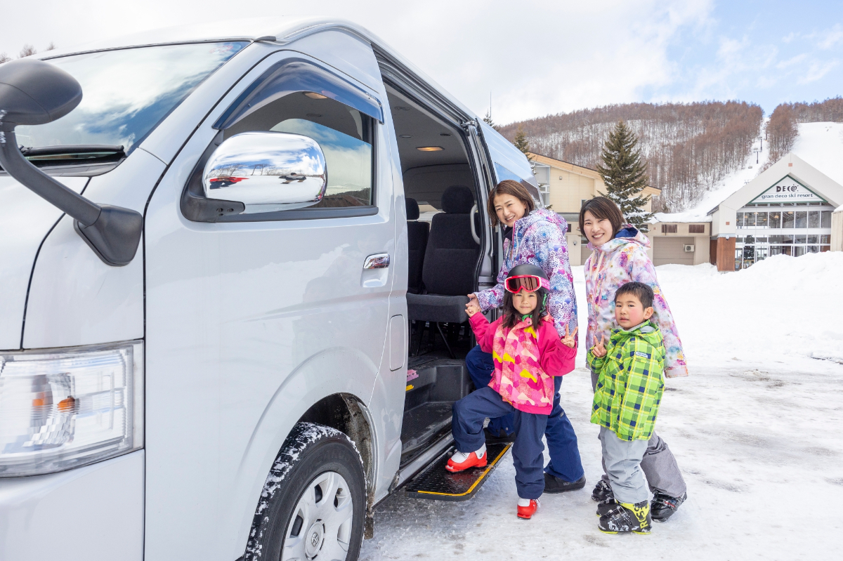 ホテルからゲレンデ、もしくはゲレンデからホテルへは滑って移動するのが簡単だが、子供の滑りが少し心配な場合などはシャトルバスを利用する方法もある。都合の良いタイミングで(ホテルのフロントやスキー場のインフォメーションで依頼)送迎をしてもらえるのもポイント。
