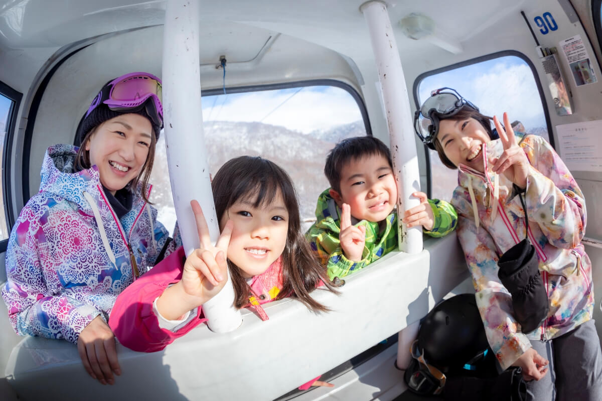 ゲレンデ上部は素晴らしい雪質で初級者でも楽しく滑れるコースを用意。乗車中の眺望も楽しみながらゴンドラで一気に山頂エリアへ。ちなみに週末などは乗車待ちで混雑することも多いが、ホテル宿泊者はゴンドラに優先乗車できるのでとても快適。