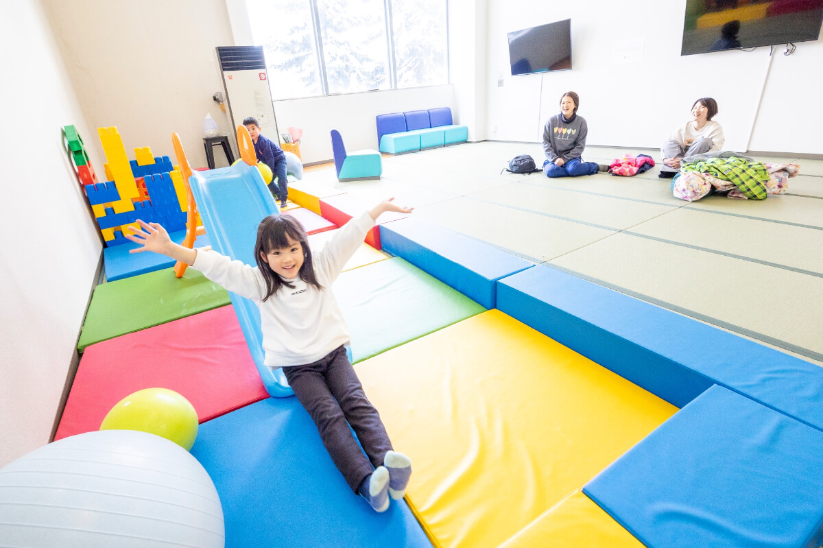 天候があまり良くなかったり、子供が滑り疲れたりしてきた時などは、ベースのマウンテンセンターを利用しよう。マウンテンセンター・ウェストウィング2階には無料で利用できるファミリールームを完備。暖かい室内でブーツを脱いで遊べるので、子供が楽しいだけでなく、親もちょっとひと休みできる。