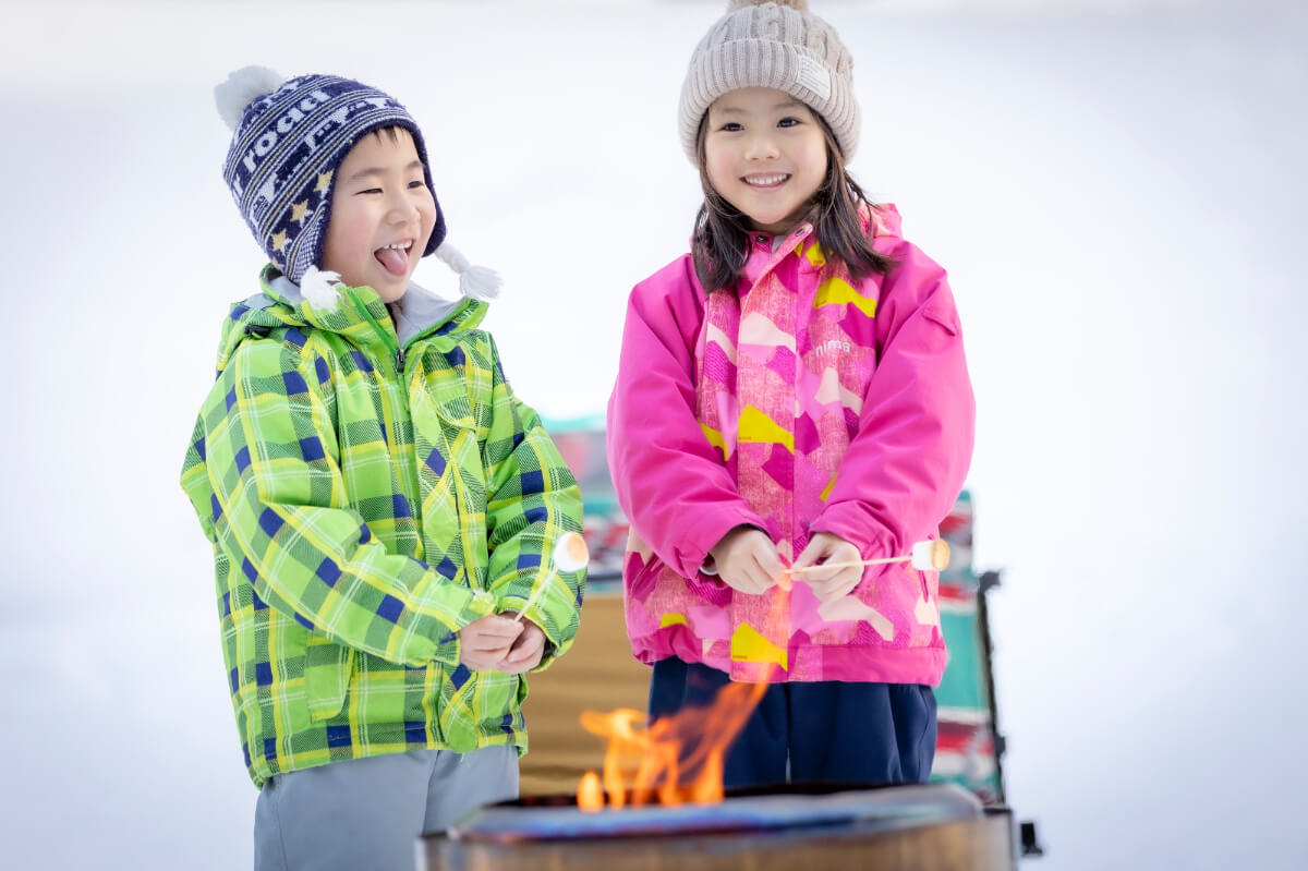 ウェルカムテラスでは宿泊者限定で、たき火を利用した「焼きマシュマロ」の無料サービスを提供。甘いマシュマロを串に刺して、たき火で少し炙るだけなので、子供でも簡単にできる。マシュマロがさらに香ばしく美味しくなるので、子供たちは大喜び。もちろんおかわりもOK!