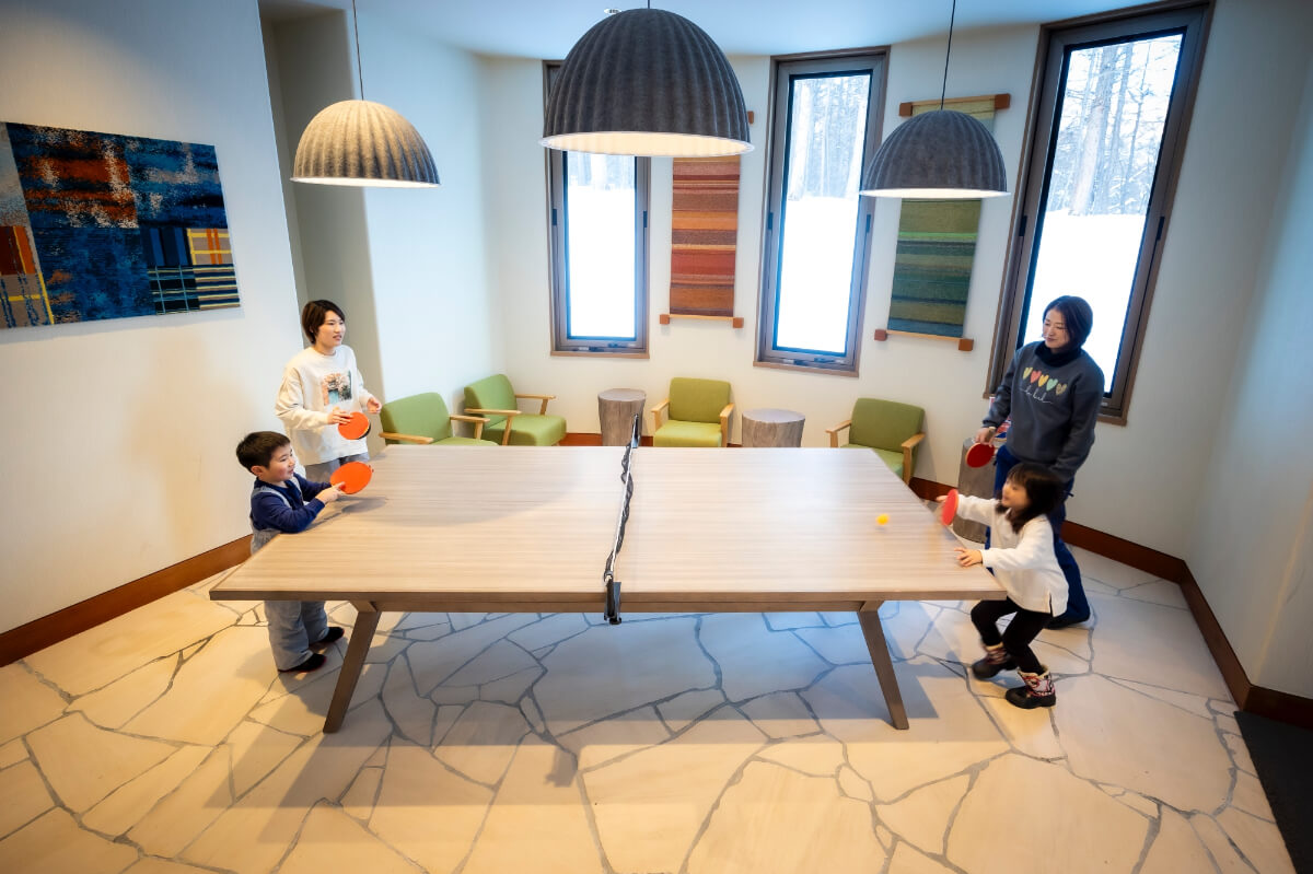 遊び足りないそんな時、ホテルの中でもお楽しみがいっぱい。まず1階のエレベーターホール横には、ホテルオリジナルの卓球台があって、1回30分(無料)まで遊ぶことができる(要予約)。